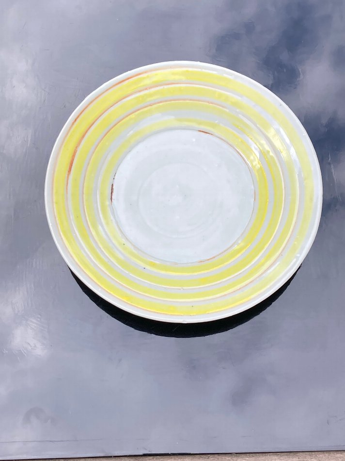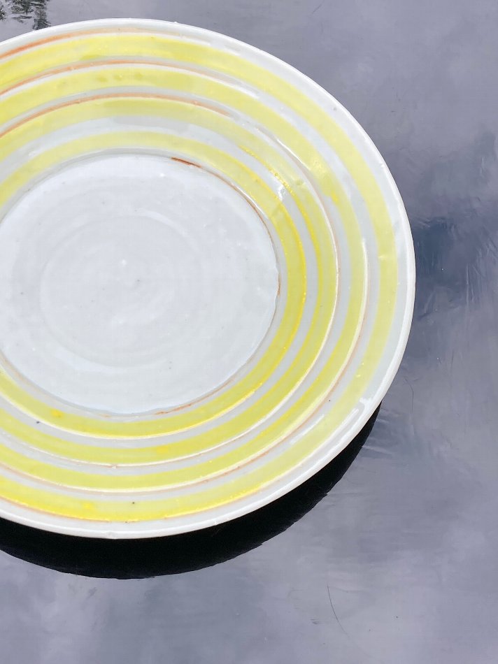 手作りのテクスチャーを表す為に 意図的に 生地に不純物を混ぜていらっしゃいます。 その為 鉄粉(黒の丸部分)や ピンホール(青の丸部分)が見受けられます。 手作りのものならではの 面白味と感じて頂けたら幸いです。
