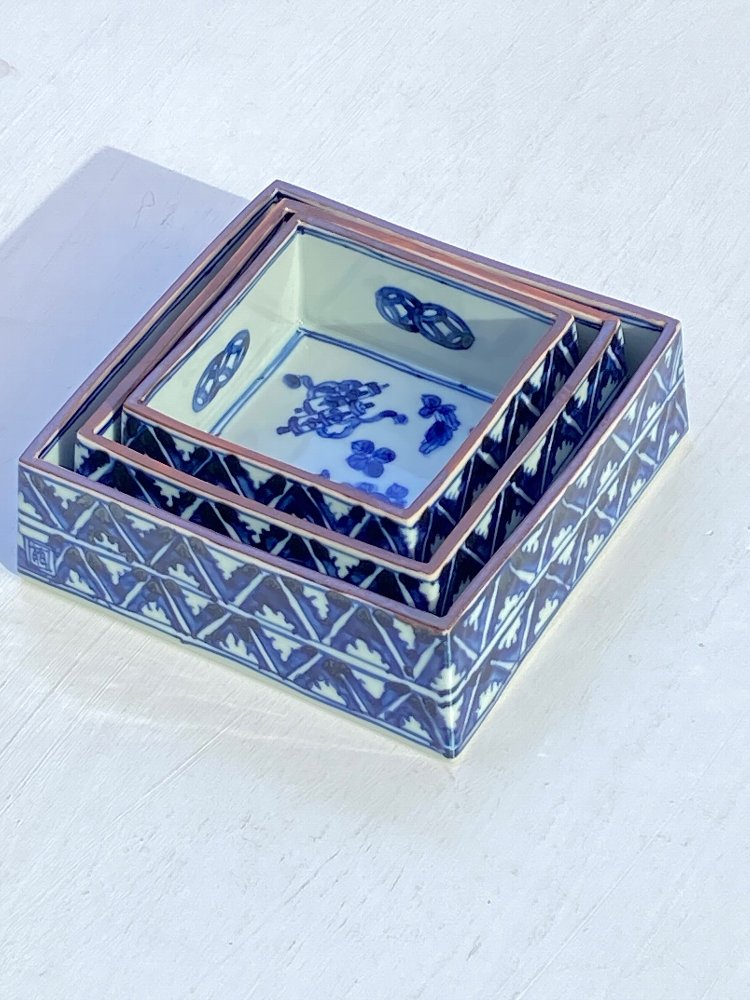 > 萠窯 染付四方鉢(小)