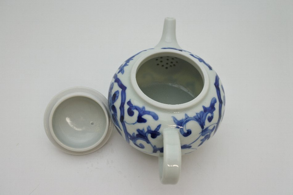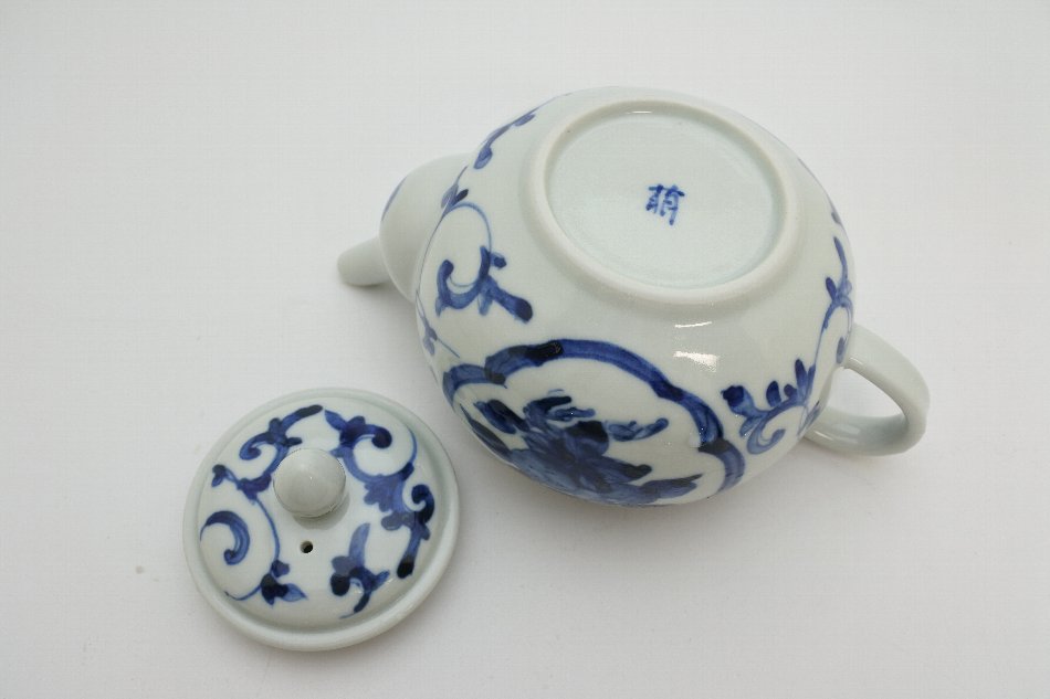 > 萠窯 ポット(染付唐草)