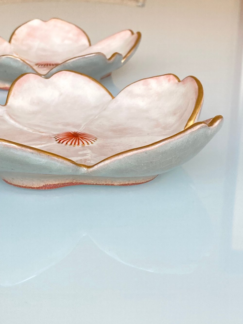 花びらの淡いピンクと外側の青灰色のコントラストがとても魅力的です。